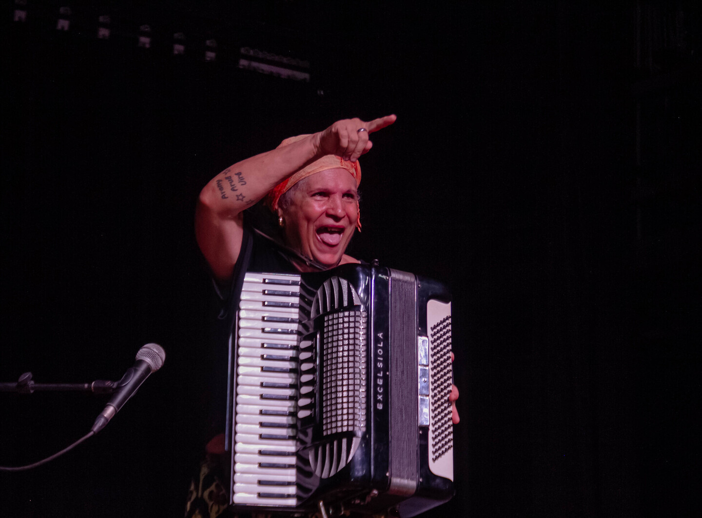 (8.out.24) – Lenilde mescla o uso de piano e sanfona em apresentação. Foto: Tero QueirozO roteiro musical da noite propõe um trânsito direto entre as matrizes regionais e elementos do rock.