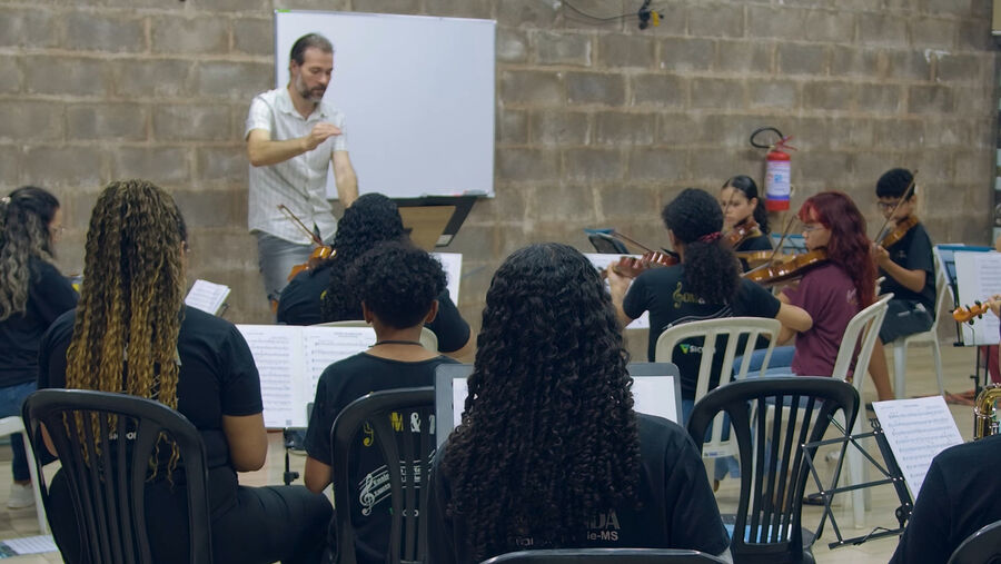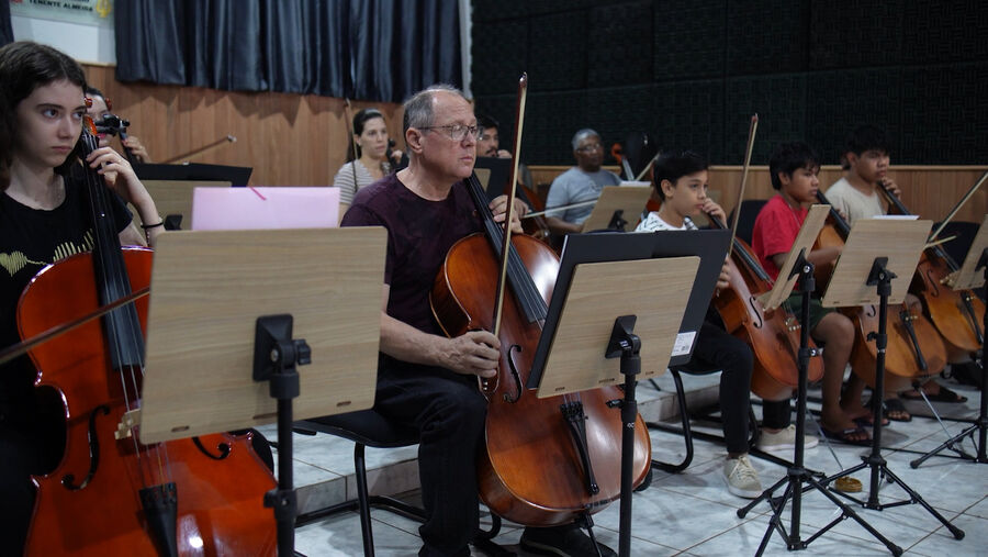 Na vertente de cordas, a Orquestra de Violoncelos de MS integrou a programação. O professor Marcelo Chefão ressaltou a consistência do aprendizado e a função social da prática em conjunto.