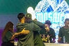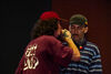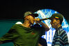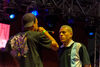 MC Kamui e MC Miliano se abraçam após duelo acirrado. Foto: Tero Queiroz Kamui destacou que a derrota assinala que deve se preparar mais, mas acredita que ainda há chance de ele garantir uma vaga na competição em BH. “Para mim, não ir para o nacional esse ano significa que eu não estou preparado o suficiente para ganhar o estadual, que eu não pude ser superior nas rimas do Miliano, mas isso não significa que acabou meu sonho. Eu estou classificado pela repescagem por ser finalista, e esse ano a gente pode ter dois sul-mato-grossenses no nacional. Então, não me sinto nem um pouco frustrado; na verdade, me sinto motivado. Ele me ganhou aqui, e eu vou buscar ele lá”, prometeu.