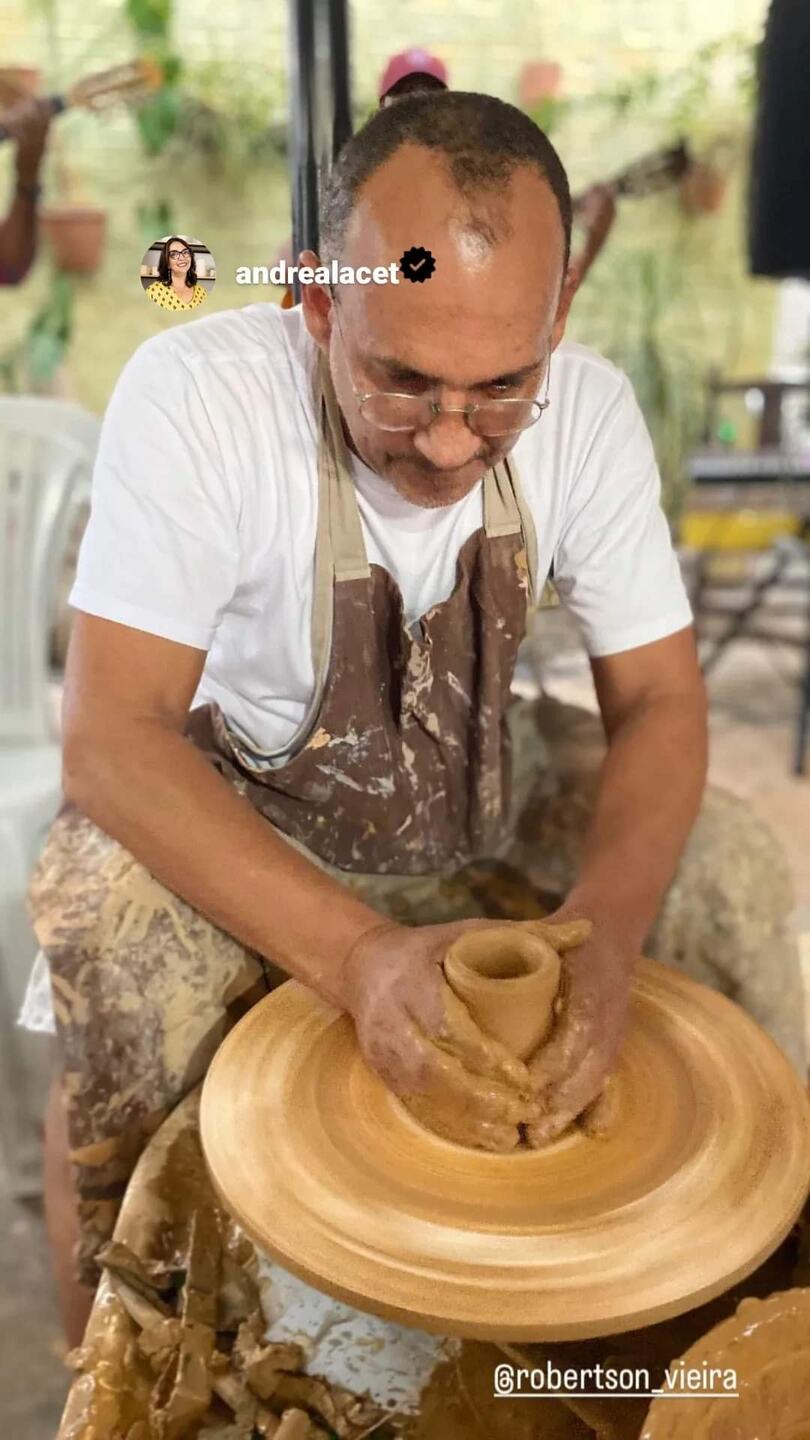 Robertson durante o projeto 'Encontro da Cerâmica nas Águas do Pantanal', idealizado pela ceramista Andrea Lacet. Foto: Arquivo pessoal"Algumas conquistas marcaram essa caminhada, como a Medalha Conceição dos Bugres, o primeiro lugar na categoria Inovação Tecnológica no 1º Festival de Artesanato do Estado e a exposição permanente das peças “Vaso Piraputanga” e “Dourado” no Bioparque Pantanal", citou, destacando que os reconhecimentos foram resultado do projeto “Encontro da Cerâmica nas Águas do Pantanal”, idealizado pela ceramista Andrea Lacet.
