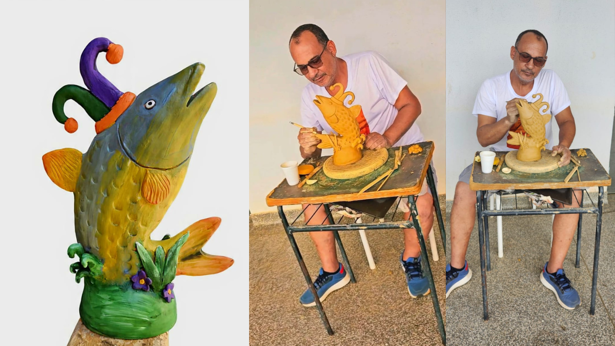 “Tenho pesquisado referências de alguns grafismo Kadiwéu a partir dos estudos do Memorial Henrique Spengler. Também dialogo com elementos do cotidiano ribeirinho — peixes, redes, frutos, o movimento das águas do Pantanal. Minha produção parte dessa observação e pesquisa. Não se trata de reprodução, mas de interpretação em cerâmica, principalmente em relevos e peças com temática ligada à pesca e à cultura pantaneira", detalhou.