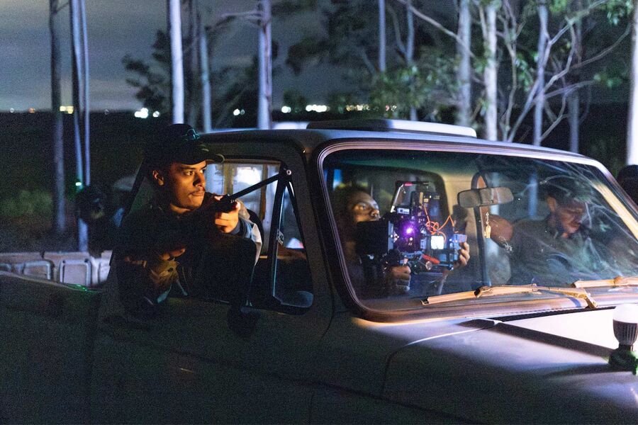Filme Amoitado conta com cenas sob a chuva. Foto: Henrique Kawaminami | Holofote EstúdioSobre o material captado, o diretor contou que o desafio foi extremo, mas o resultado compensador. “Trabalhamos em um set que fluiu bem. Temos cenas espetaculares, na minha opinião, mas foi bastante cansativo, principalmente por se tratar de filmagens noturnas. As sequências mais desafiadoras envolveram ação, chuva, armas cenográficas e, claro, muita energia do elenco e concentração da equipe técnica e artística”, explicou.
