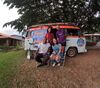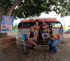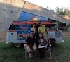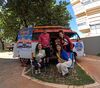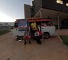 Ao fundo, destacam-se o prédio da Cia Pisando Alto e a Kombi Edit. Em primeiro plano, da esquerda para a direita, encontram-se Fran Corona (sentada com blusa azul), Nilciene Maciel e Júnior de Oliveira. / Créditos: Cia Pisando Alto e Antonio Lopes