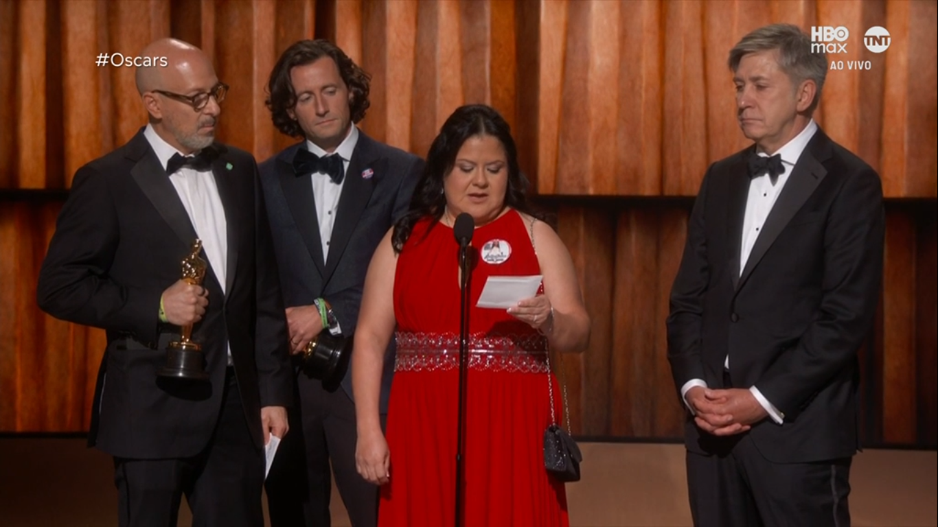 Os cineastas Joshua Seftel e Conall Jones foram premiados, na noite deste domingo (15.mar.26), com a estatueta de Melhor Curta-Metragem Documental pelo filme "Todos os Quartos Vazios" (All the Empty Rooms), dirigido por Joshua e Conall.