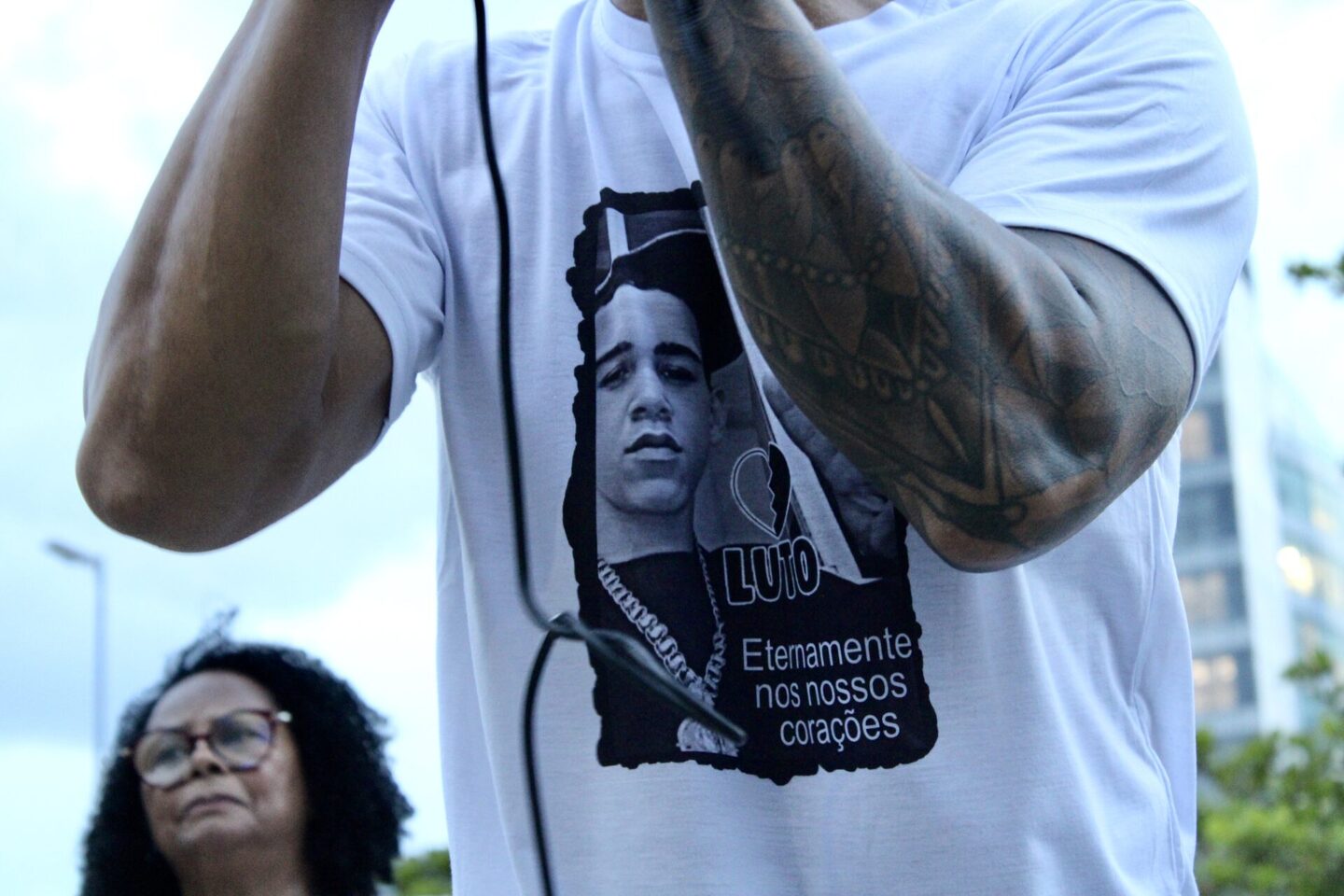 “Ele era trabalhador, ele fazia um monte de coisa boa. Ele era estudante! Ele entregava marmita que a minha mãe fazia! Mataram meu irmão, eu tô indignada! Querem trabalhar? A gente também quer trabalhar, mas justo! Não incorreto, matando inocente! Ele morreu! Ele não vai voltar mais pra minha casa! Eu vou voltar agora e ele não vai estar lá! Até quando vocês vão fazer isso”?
