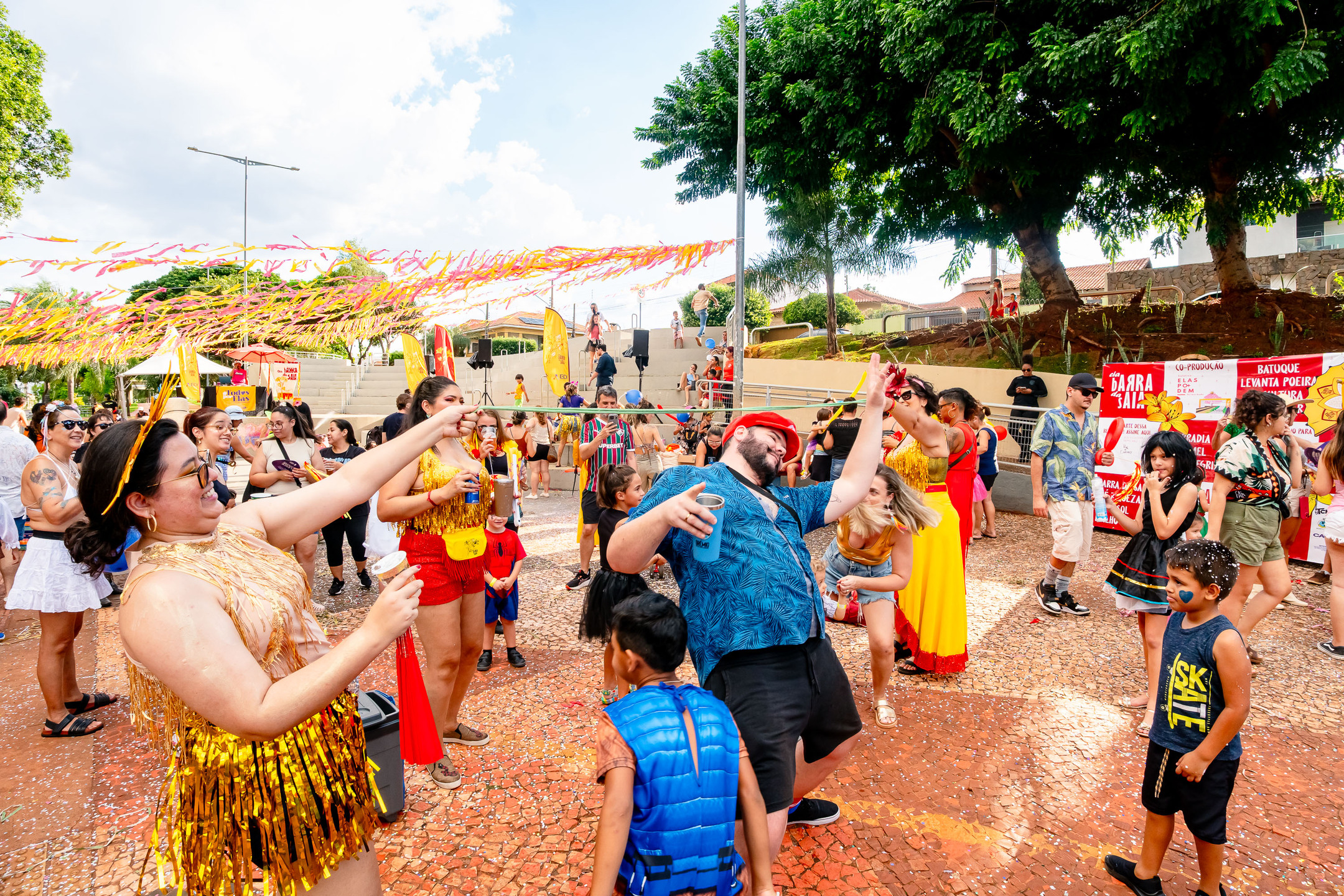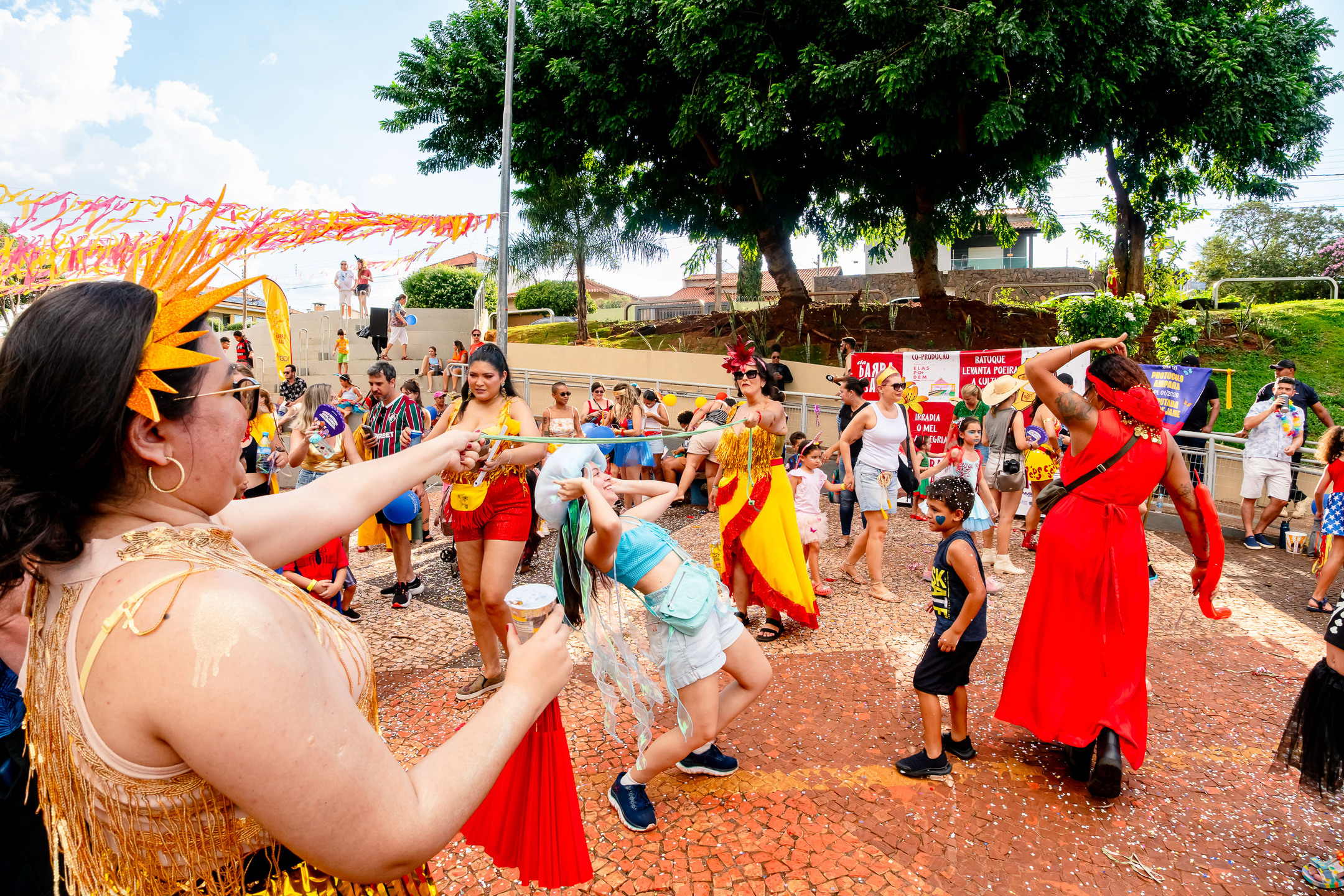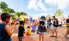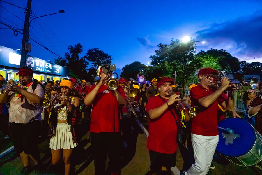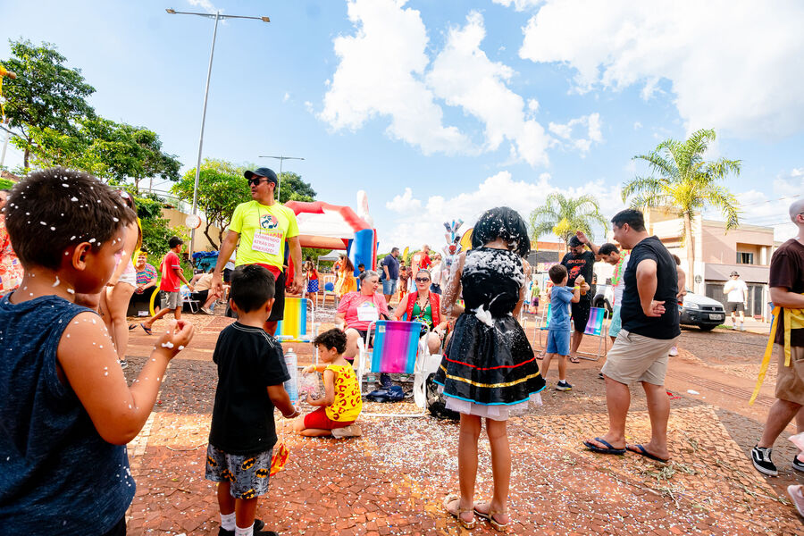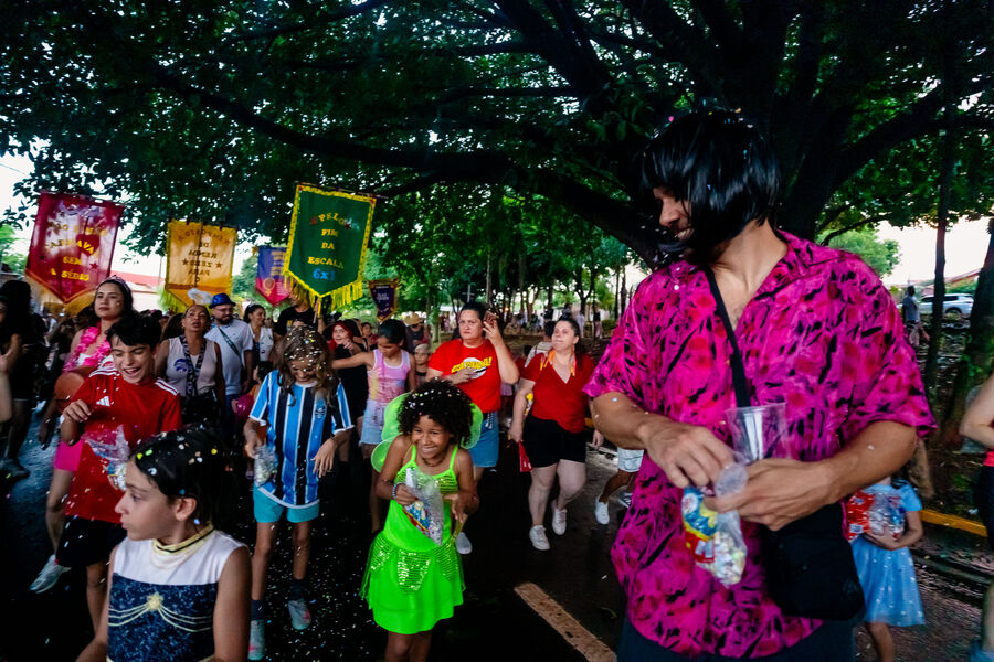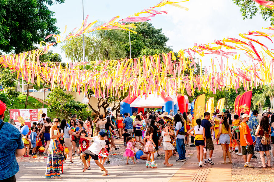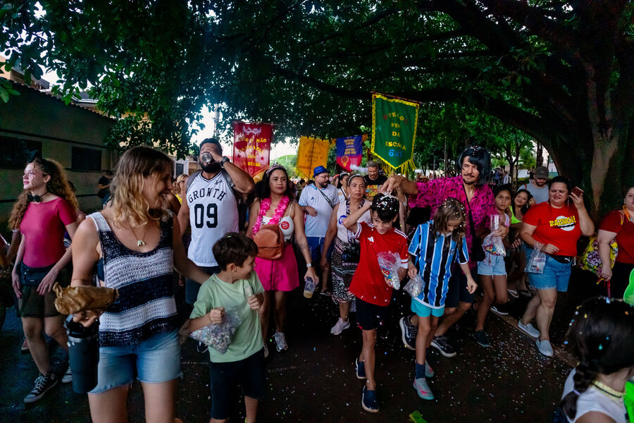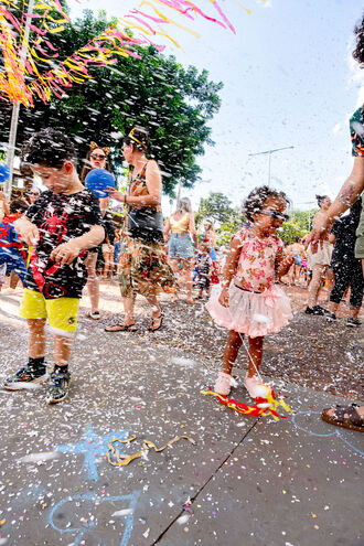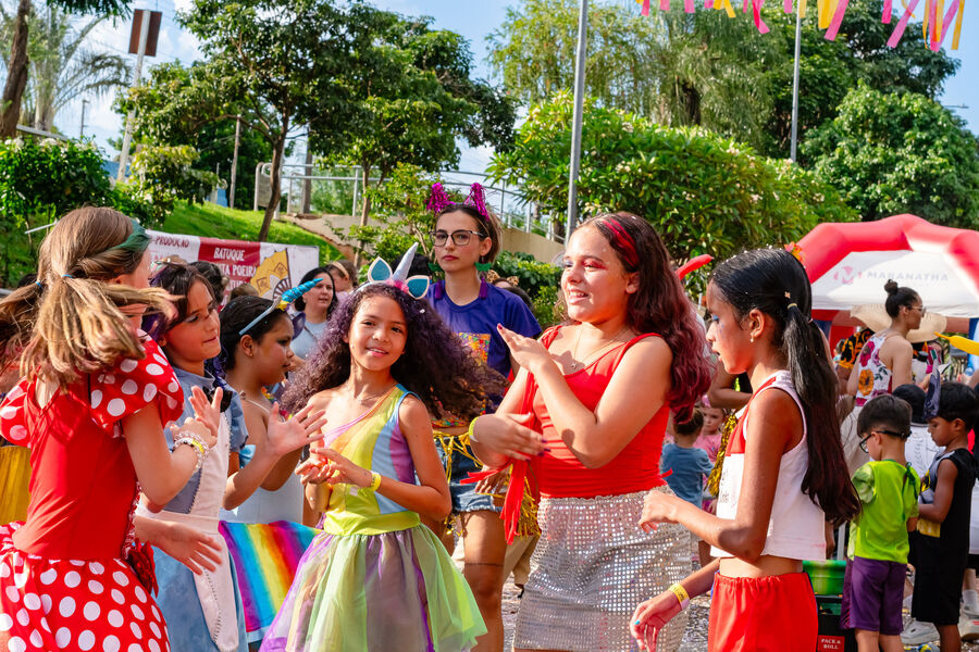 O Bloco Cia Barra da Saia atraiu centenas de pais e crianças à Orla Morena na tarde e noite de 2ª feira (16.fev.26) em Campo Grande (MS).