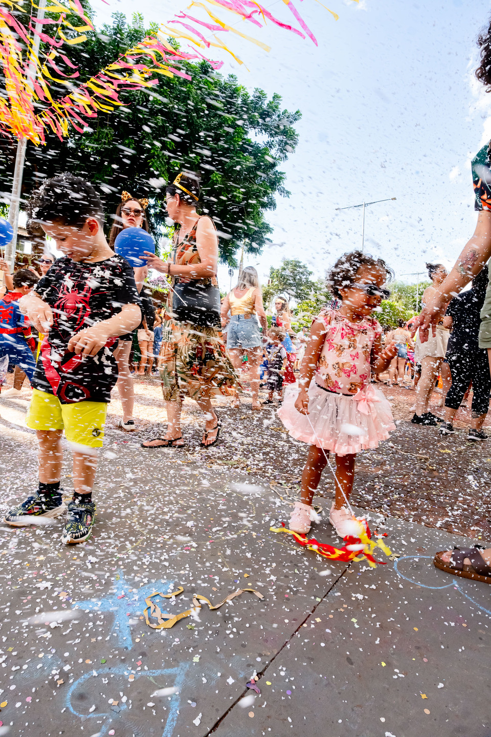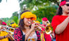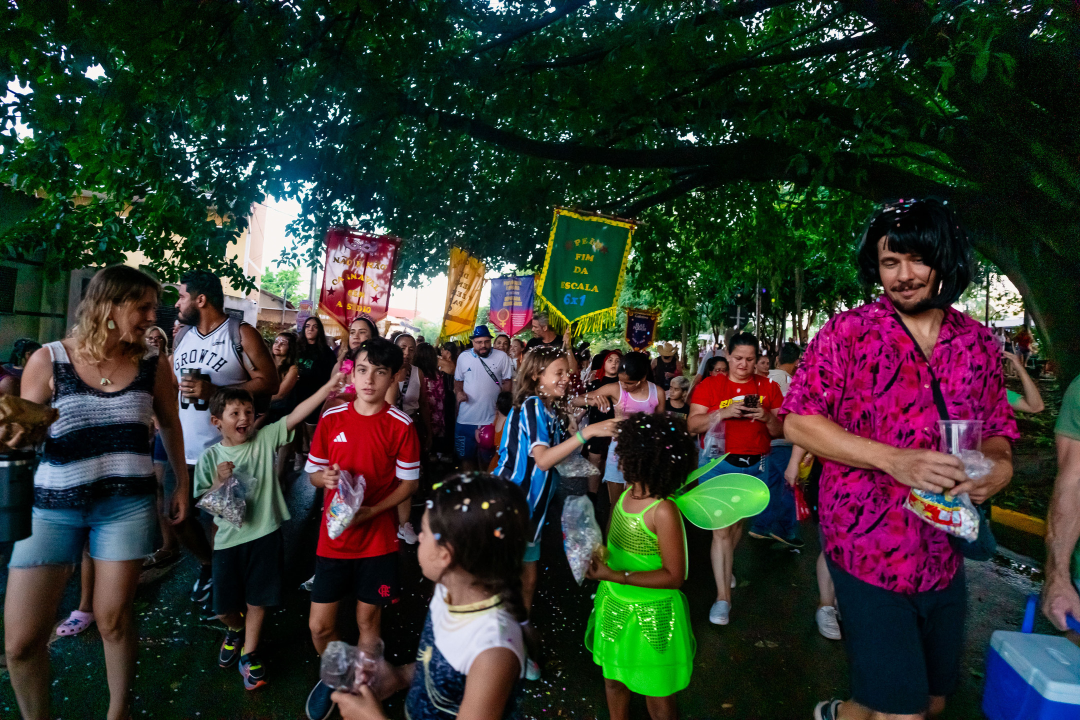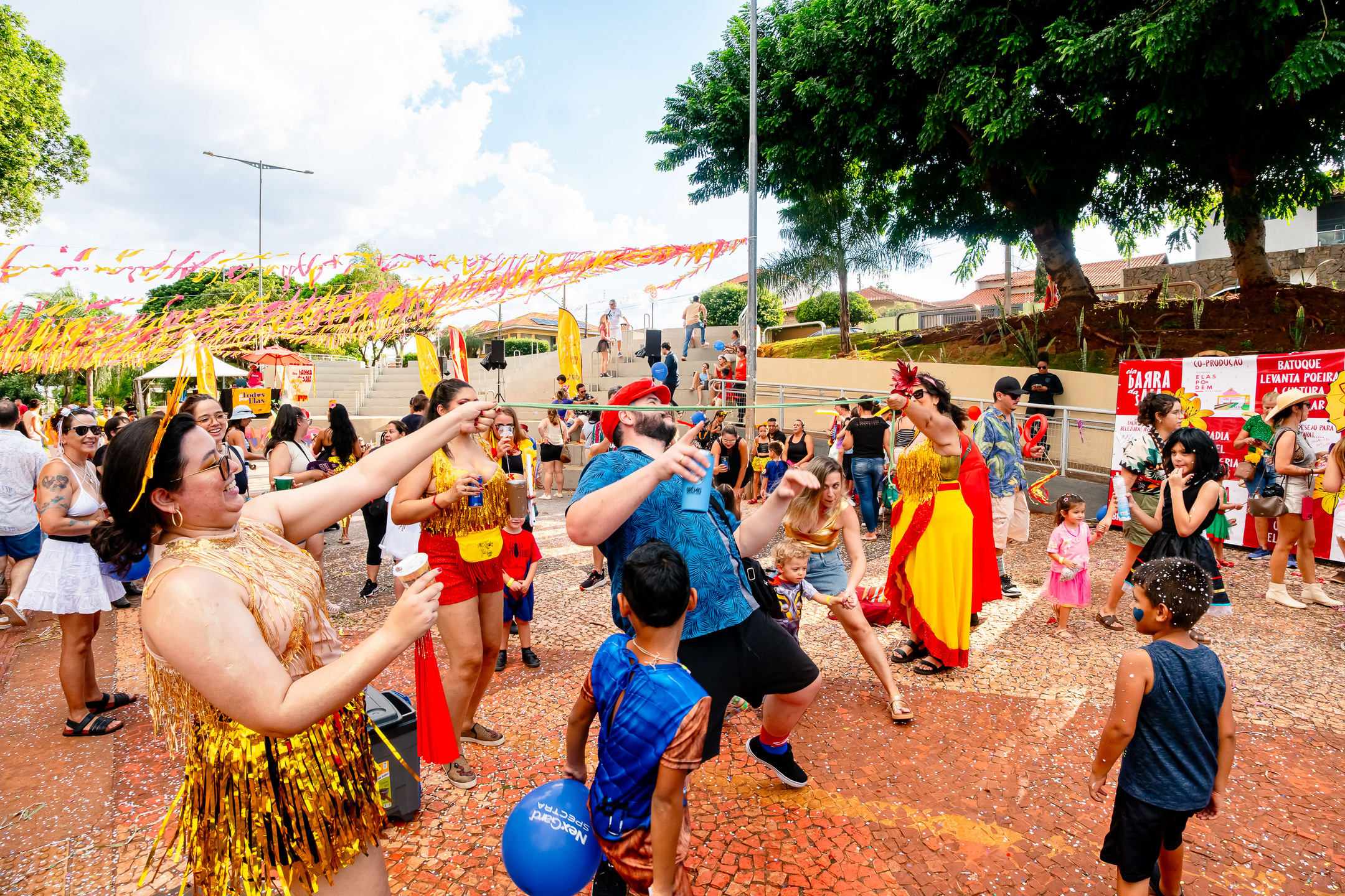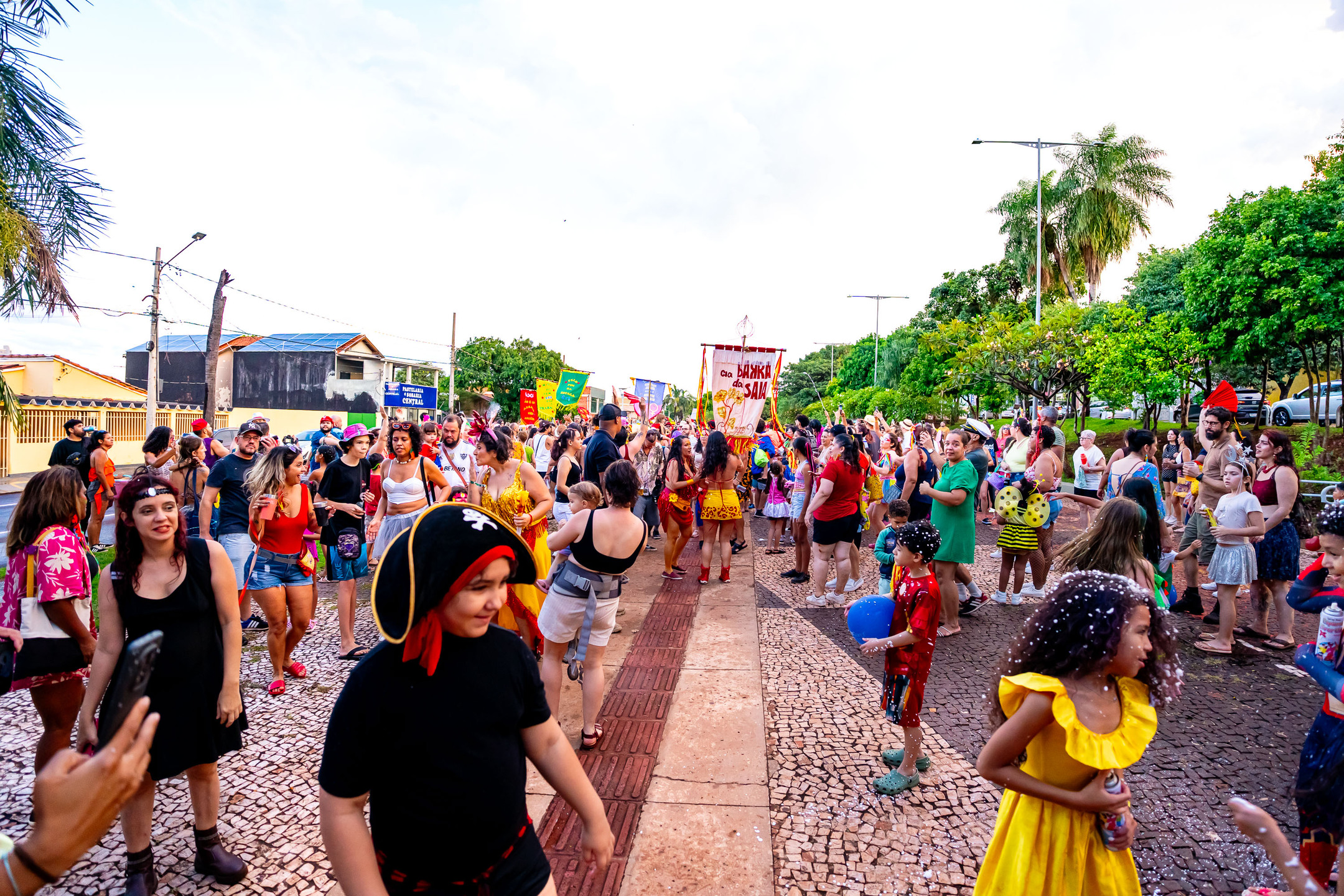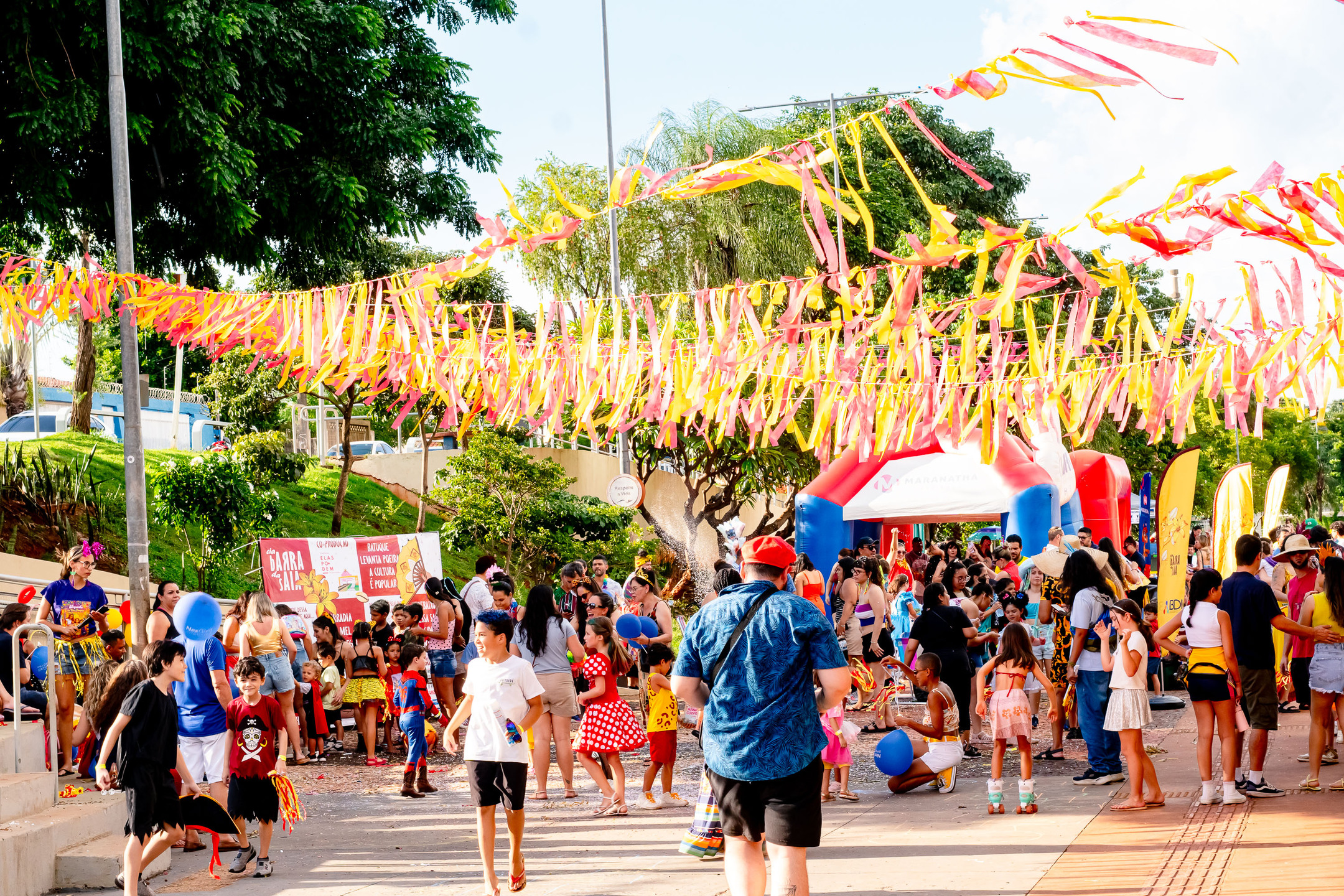 O Bloco Cia Barra da Saia atraiu centenas de pais e crianças à Orla Morena na tarde e noite de 2ª feira (16.fev.26) em Campo Grande (MS).