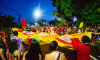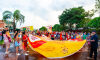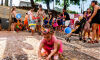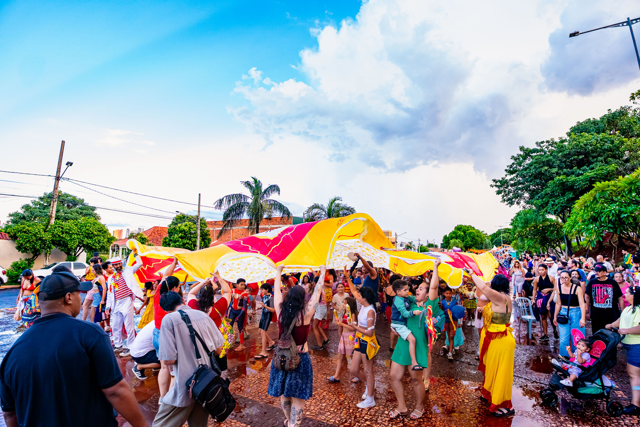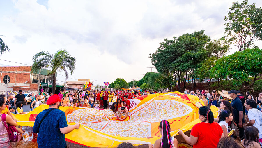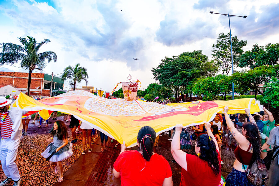 Público dançou sob saia gigante no Bloco Barra da Saia na Capital sul-mato-grossense. Foto: Tero QueirozAinda conforme a idealizadora, a manutenção das atividades carnavalescas de um bloco se assemelha à criação de um filho, e muitas vezes outras pessoas se somam nessa criação: