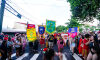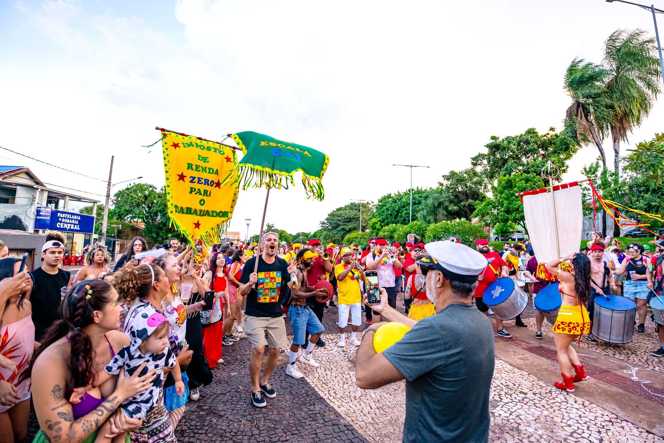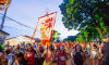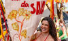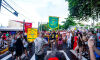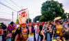 Ângela Montealvão portou o estandarte do Bloco Cia Barra da Saia. Foto: Tero Queiroz Segundo a fundadora do bloco Cia Barra da Saia e uma das produtoras, Ângela Montealvão, o momento simbolizou uma consolidação no 2º ano de desfiles: