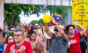 Cortejo levou a saia até o palco instalado no início da Orla Morena na Capital de MS. Foto: Tero QueirozCom o crescimento exponencial da Cia Barra da Saia, Ângela projetou os desejos de 2027 nas ruas.
