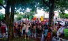 A demora, em vez de afastar o público, atraiu mais pessoas que, mesmo com filhos de colo, se uniram à festa.