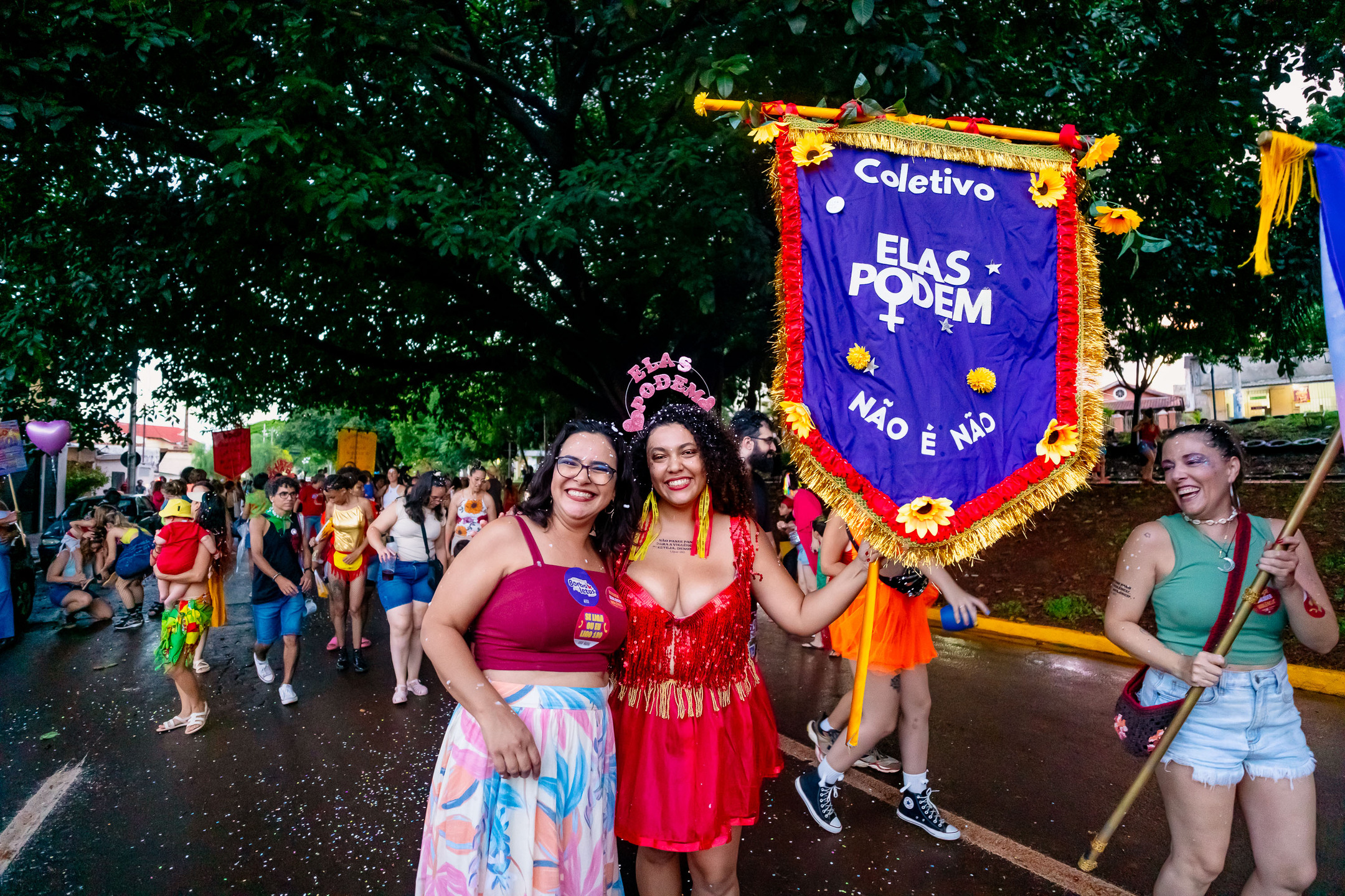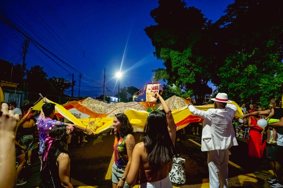 "Mesmo com a chuva, os nossos foliões ficaram, brincaram, pularam com suas crianças e fizemos esse cortejo debaixo da saia. Então assim, esse que é o segundo ano do bloco, eu acho que ele veio como um brinde para consolidar, um bloquinho que traz a cultura popular, que traz a nossa latinidade, que é a identidade de Campo Grande, que é o coração da América Latina, e nós da produção estamos muito felizes e muito emocionados com tudo isso que está acontecendo", introduziu.