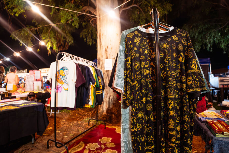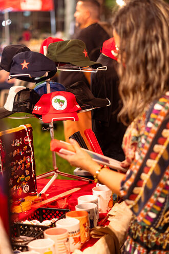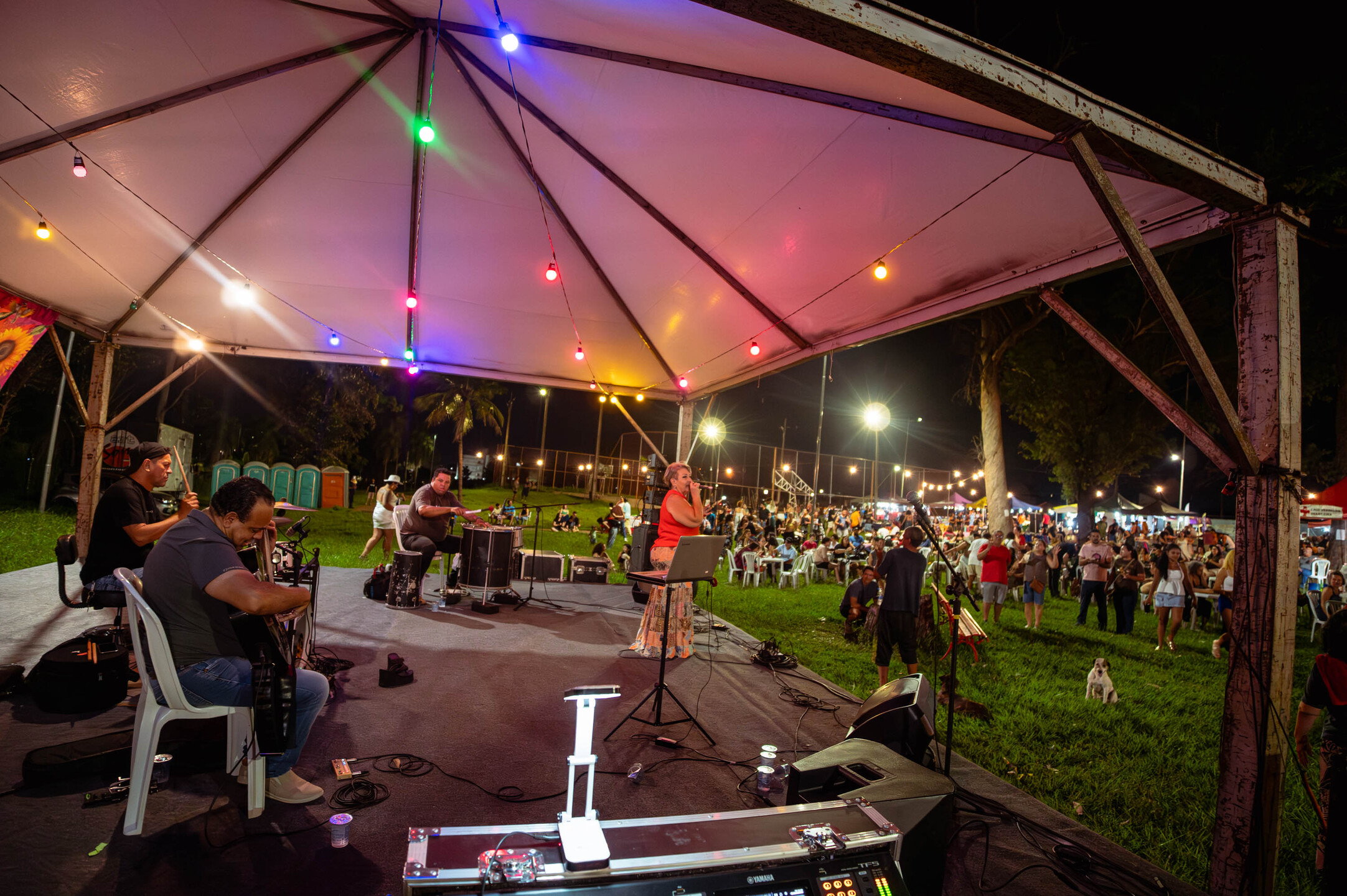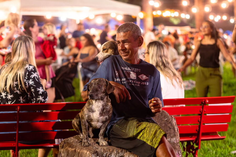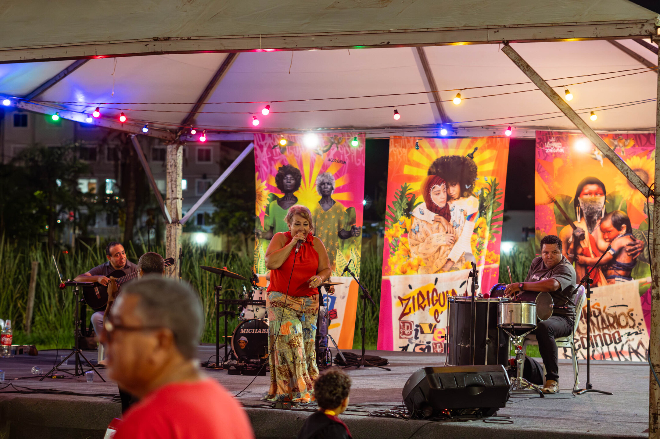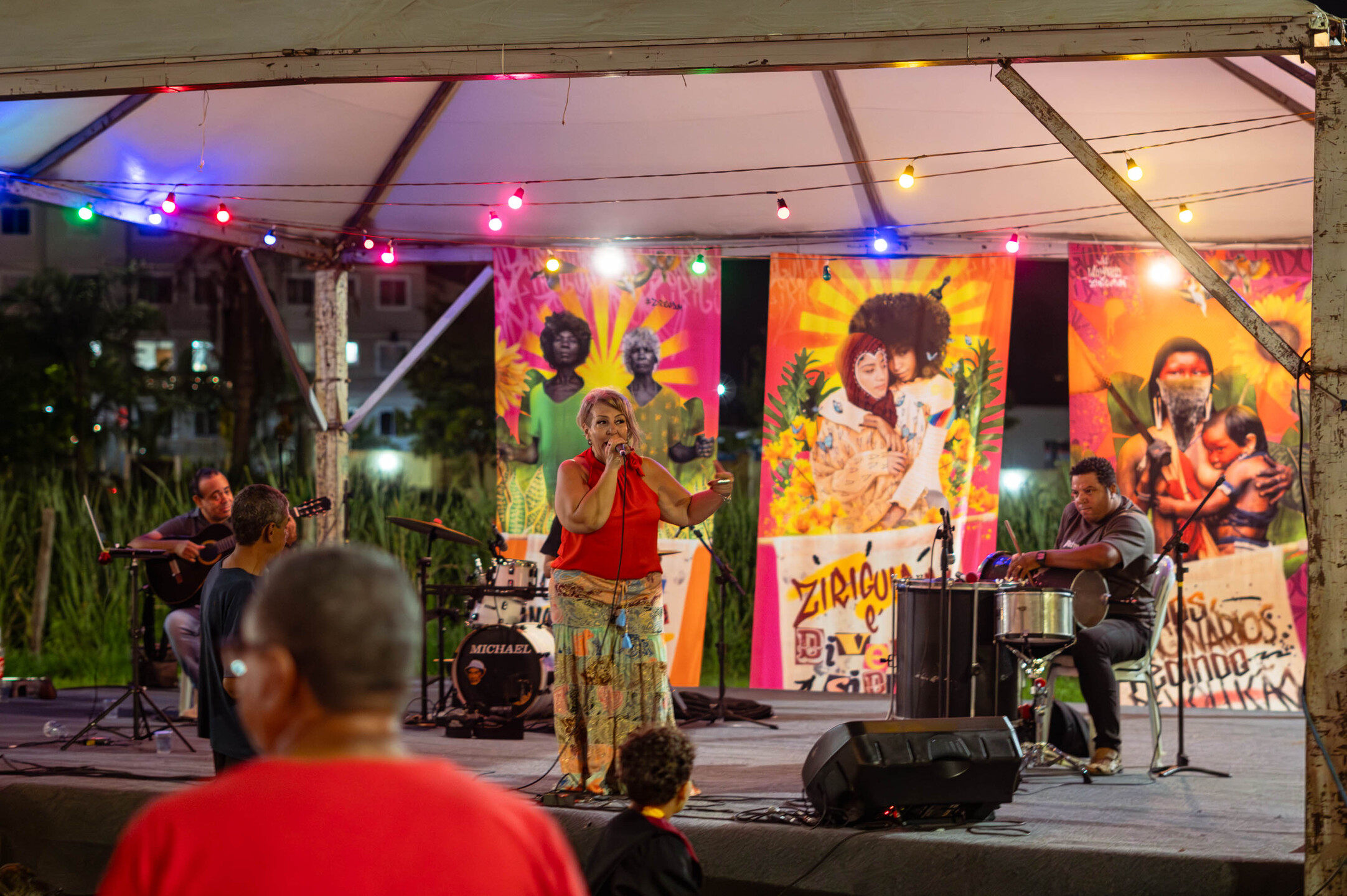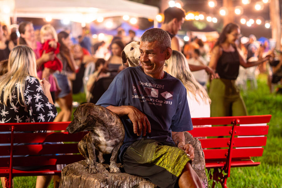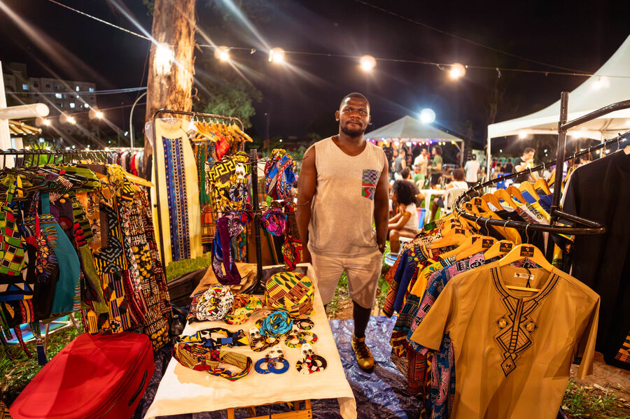 Vimos ocupados por barracas e grande público os quase 20 mil metros quadrados da área verde e passarelas da Praça do Preto Velho, no Jardim Paulista, em Campo Grande (MS). É noite de 7 de março — véspera do Dia Internacional das Mulheres — e acontece na praça a 31ª edição da Feira Ziriguidum.
