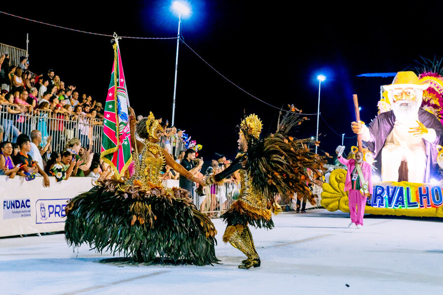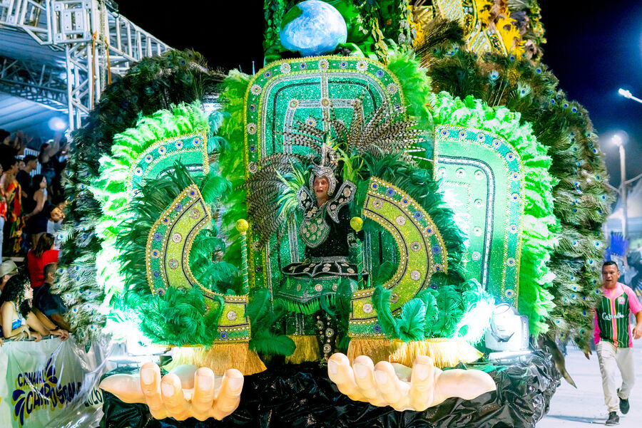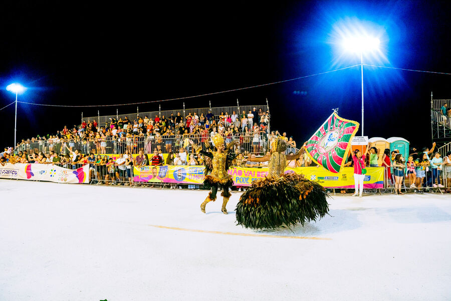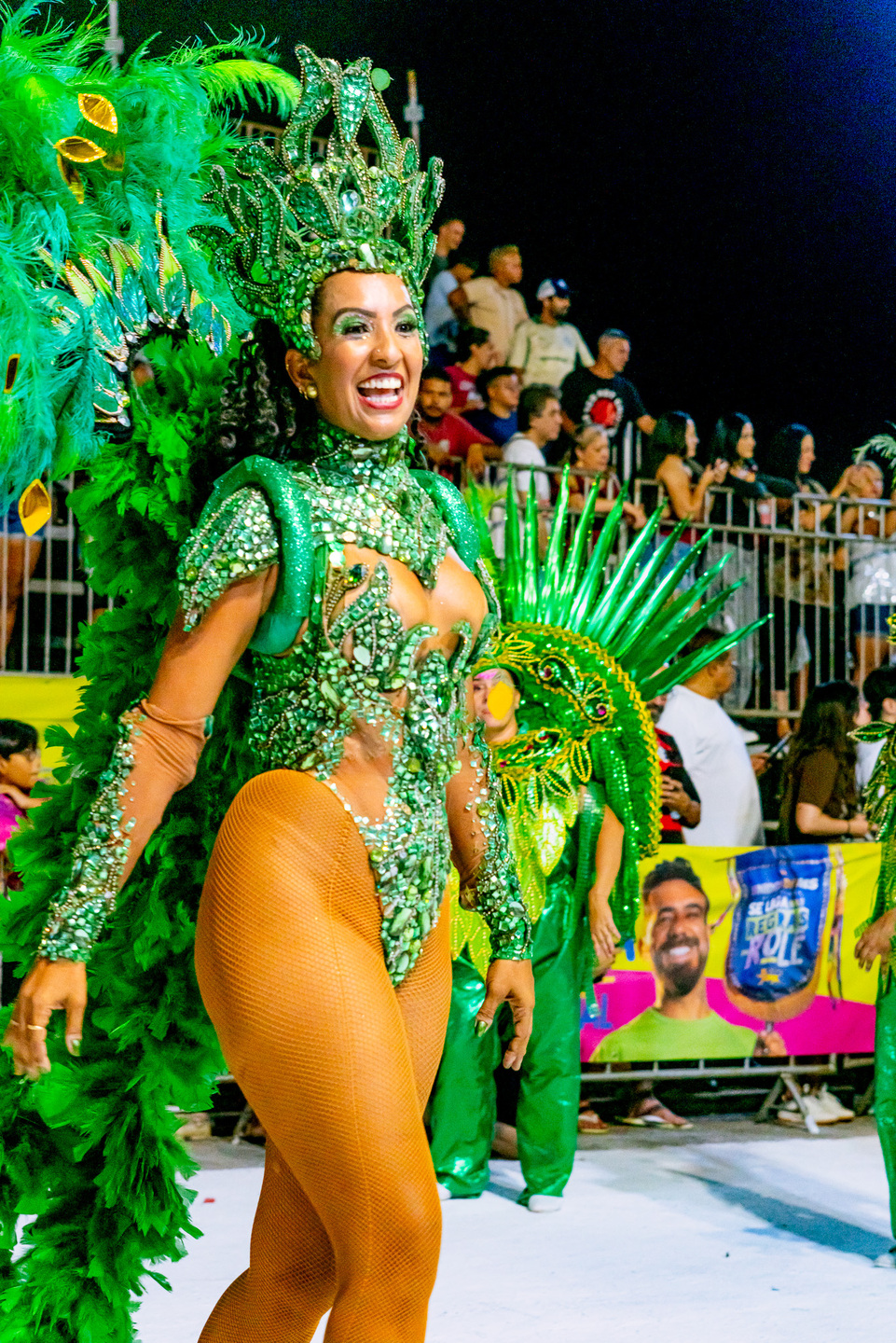 A Vila Carvalho transformou um tema potencialmente complexo em algo palpável ao unir os dois maiores biomas do país. A escola acertou na tradução visual: carros e figurinos, além de respeitarem o verde e rosa da agremiação, eram narrativos e objetivos. O samba, embora menos potente que o da Cinderela, embalou 600 componentes com uma adereçagem primorosa. Leia aqui nosso artigo de opinião sobre o Carnaval de Campo Grande.