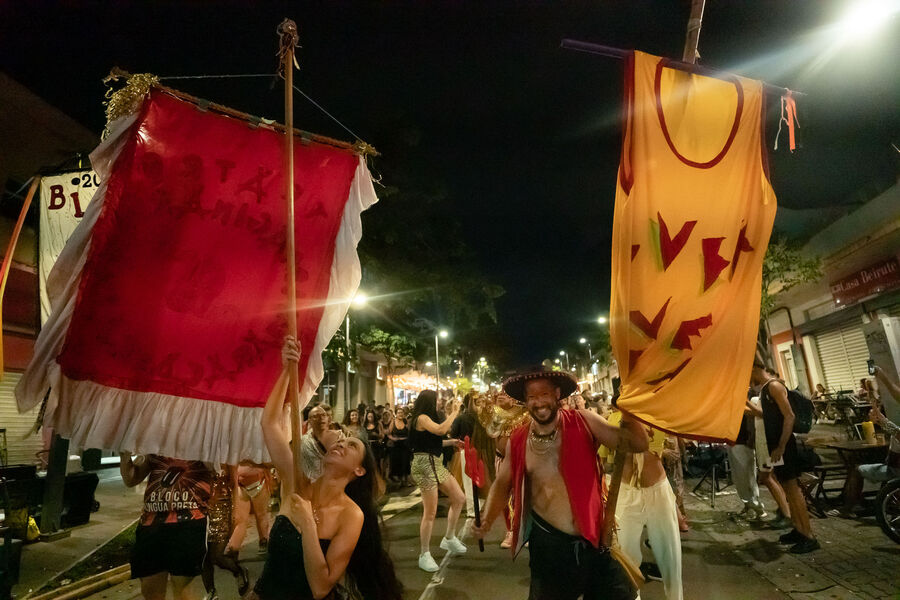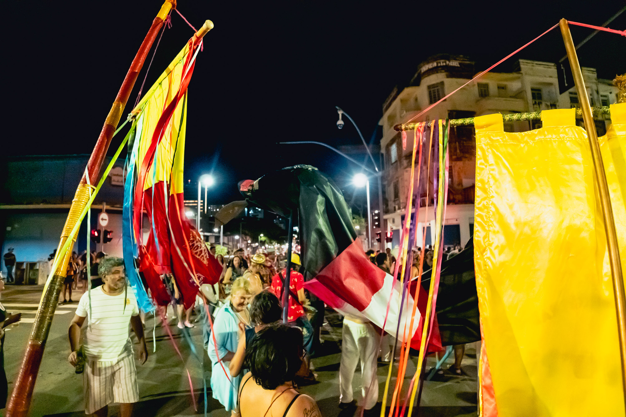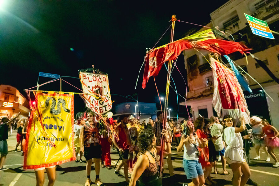 "Existia um motivo: abrir caminho para o teatro", relembra Fernando, citando que os primeiros cortejos eram marcados pelos estandartes cênicos.