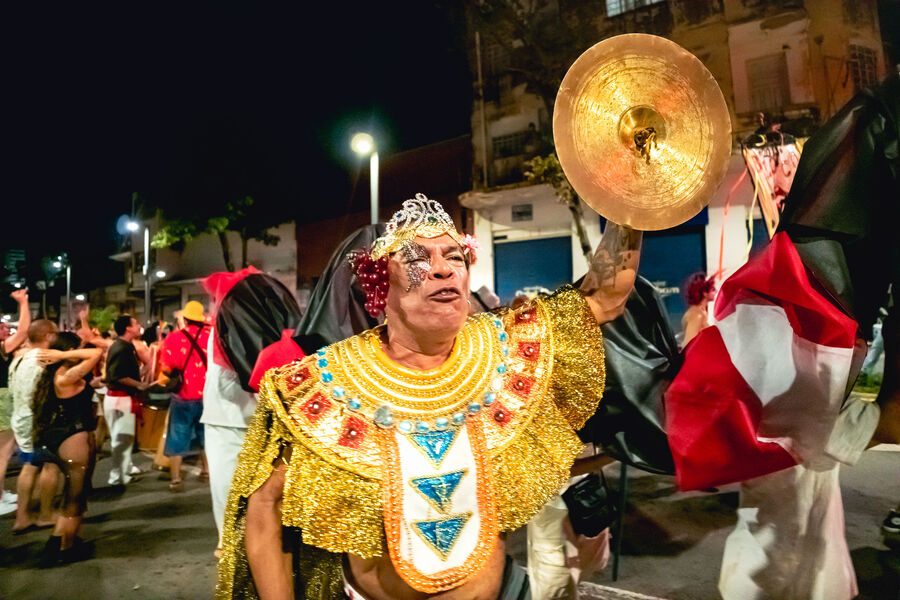 (12.fev.26) - Carlos Augusto Ferreira Sá, de 64 anos, durante festejo do Bloco Evoé Baco. Foto: Tero Queiroz"O carnaval estava ficando muito fechado. Essa retomada é importante como movimento cultural natural do povo brasileiro. O amor ao carnaval é maior do que qualquer escola, porque nasce nas comunidades", defendeu.