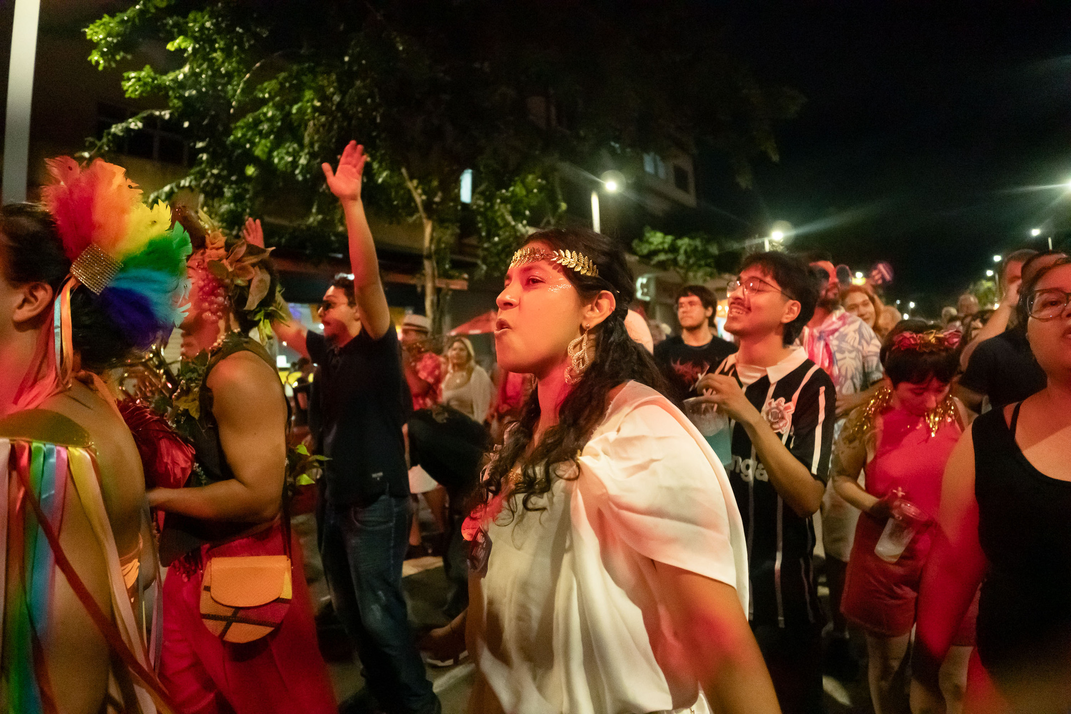Mesmo diante das adversidades, Camila celebrou o volume de ocupação artístico-cultural do Bloco Evoé Baco nas ruas.
