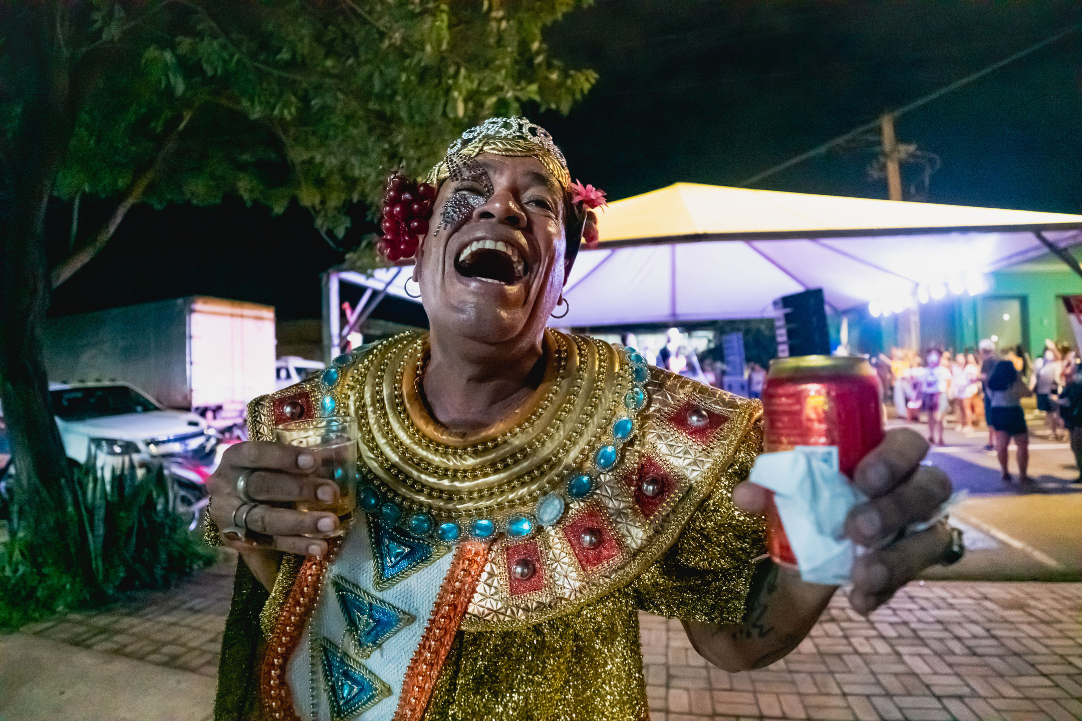 (12.fev.26) - O professor Cristiano Souza durante celebração do carnaval de rua em Campo Grande (MS), no Bloco Evoé Baco. Foto: Tero QueirozPara ele, o Evoé Baco representa a "essência" do que é ser um Bloco de Rua: