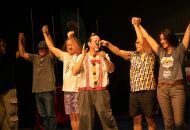 Sob chuva forte, palhaço de SP arrasta público para a Orla e ao Teatro